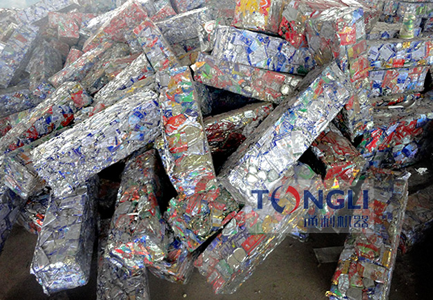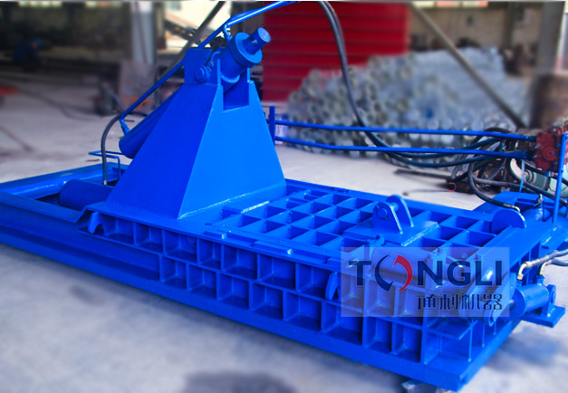 將打包物料置于打包機(jī)料箱內(nèi),液壓油缸工作打壓,將打包物料壓縮成型,壓制成各式金屬包塊。
