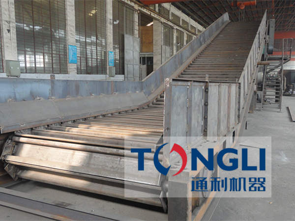 輸送用軋制型鋼制作,從而在加載區(qū)域形成一個(gè)堅(jiān)固的結(jié)構(gòu),側(cè)壁也采用厚鋼板制作,在側(cè)面機(jī)架設(shè)有迷宮式密封結(jié)構(gòu),可有效防止金屬物料從兩側(cè)外溢,并防止傳動鏈損壞。運(yùn)輸皮帶有鋼板加工而成,裝有焊接“琴鍵”式鉸鏈,具有足夠的鋼度。所有的輥輪和導(dǎo)軌部經(jīng)淬火合金鋼制作,以減少磨損,延長設(shè)備使用壽命。