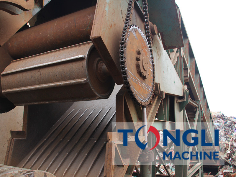 通利機(jī)器廢鋼破碎處理生成產(chǎn)線的預(yù)壓系統(tǒng)采用重型型鋼焊接架體,的傾斜角度,溜槽表面襯有耐磨合金襯板,溜槽寬度與主機(jī)進(jìn)料口相等;壓輥軸采用質(zhì)耐磨合金鋼,可根據(jù)主機(jī)承載負(fù)荷小調(diào)整進(jìn)料間隙,確保均勻喂料,避免廢鋼瞬間扯入,造成主機(jī)電機(jī)的過(guò)度載,輥輪速率由PLC控制,控制系統(tǒng)會(huì)依據(jù)主破碎機(jī)的工作情況進(jìn)行自動(dòng)調(diào)整,避免主機(jī)過(guò)度裝填,保障設(shè)備平穩(wěn)遠(yuǎn)行,限度的提升產(chǎn)能。