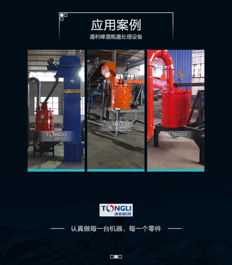 瓶蓋破碎機(jī)是一種多功能破碎機(jī)械。以速撞擊形式達(dá)到破碎、脫離蓋內(nèi)膠皮之目的,后期通過(guò)磁從而達(dá)到塑膠與鐵分離的目的。該設(shè)備具有體積小、重量輕、耗電少、、價(jià)格低廉等點(diǎn),產(chǎn)品細(xì)度可調(diào)節(jié),瓶蓋破碎機(jī)有效地解決了啤酒廠量啤酒瓶蓋兌獎(jiǎng)過(guò)后瓶蓋的處理問(wèn)題,變廢為寶,資源回收利用。