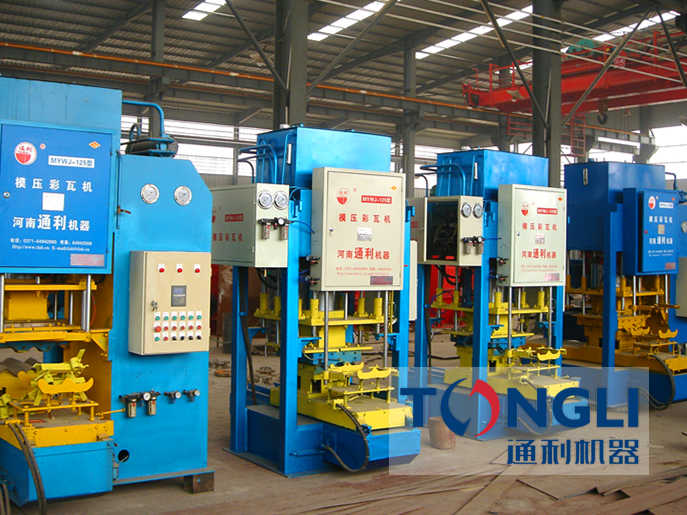 自1985年通利生產(chǎn)出臺制瓦設(shè)備以來,相繼推出余種制瓦機設(shè)備,滿足客戶的不同需求。2005年成功的MYWJ-125型水泥彩瓦機生產(chǎn)線。通利彩瓦機設(shè)備集機、電、液氣于一體,在生產(chǎn)過程中給料、成型、脫模、推出部實行自動化,由于生產(chǎn)彩瓦工藝是噸位模 壓成型,因此,制品成型美觀,強度,抗?jié)B性能,且防凍性能是其它瓦型無法比試的,已廣泛應(yīng)用于城市農(nóng)村居民住宅,并被確定為先使用的新型建筑屋面材料。
